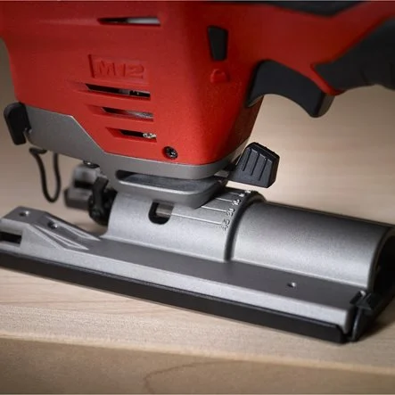 LED luč osvetljuje linijo reza tudi v temnih prostorih, ročno jo lahko izklopite. Žaga ima puhalo za prah za jasno vidljivost in odstranljiv mehki podplat, ki ščiti občutljive površine pred praskami.