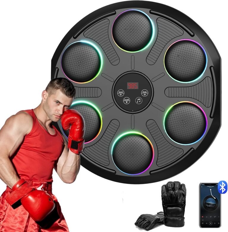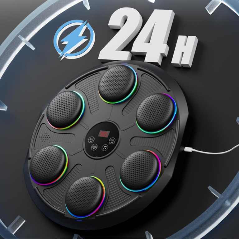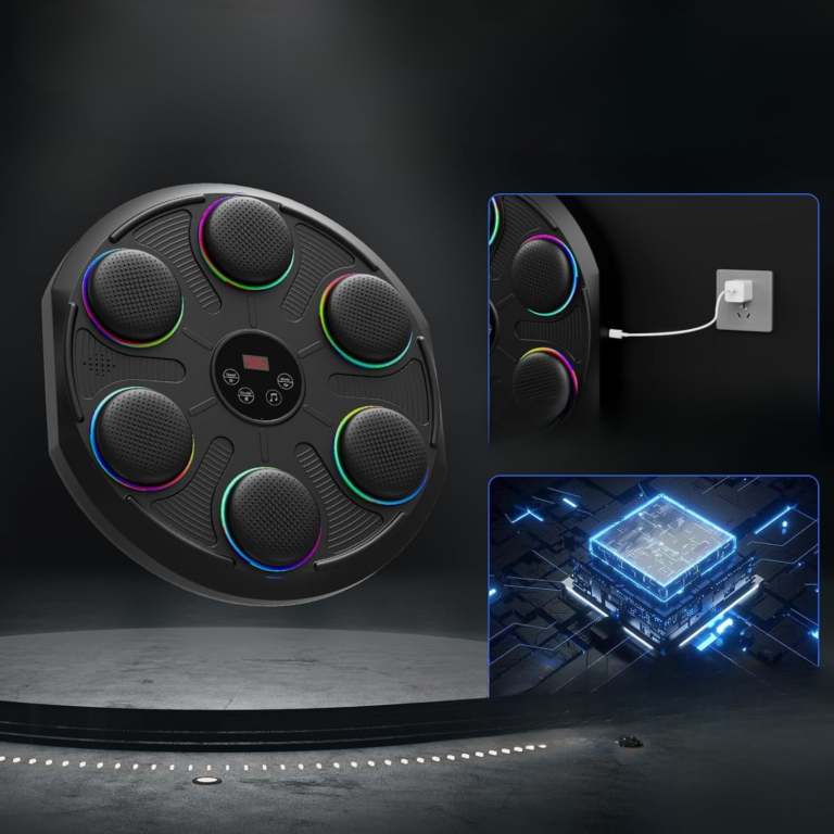 Boxează în ritmul muzicii, urmărește-ți progresul în timp real și antrenează-ți reflexele cu ajutorul acestei mașini inteligente cu LED și Bluetooth – potrivită pentru copii, adulți și seniori!