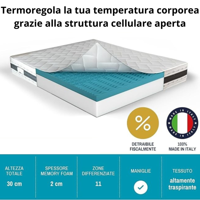 Scopri il comfort di un riposo pensato per il tuo benessere! alla Schiena, alle Spalle e alla Cervicale con il Materasso Matrimoniale Ortopedico da 30cm Traspirante, Ipoallergenico e Anti-Acaro!