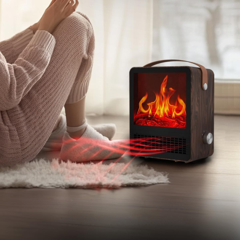 Με διαστάσεις 30,7 × 27 × 27 cm και βάρος μόλις 1,94 kg, το ηλεκτρικό τζάκι τοποθετείται εύκολα όπου χρειάζεστε ζεστασιά και άνεση. Το σχήμα του σε σχήμα βάσης παρέχει σταθερότητα και το κομψό φινίρισμα το μετατρέπει σε ένα ευχάριστο διακοσμητικό στοιχείο. Η πολύ αθόρυβη λειτουργία του επιτρέπει να χρησιμοποιείται στο υπνοδωμάτιο, το γραφείο ή το σαλόνι χωρίς να διαταράσσει τον ύπνο ή τις καθημερινές σας δραστηριότητες.