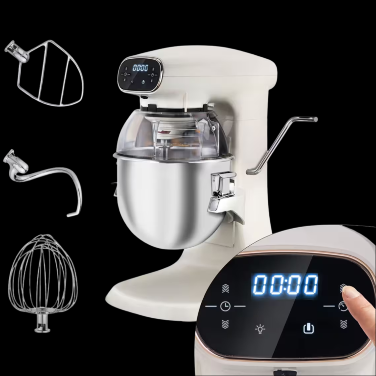 Mikser je opremljen kukom za tijesto, ravnom mutilicom i profesionalnom pjenjačom, idealnim za kolače, kreme i šlag. Savršen je za pekare, slastičarnice i pizzerije, kao i za kućne kuhinje za ljubitelje kuhanja.