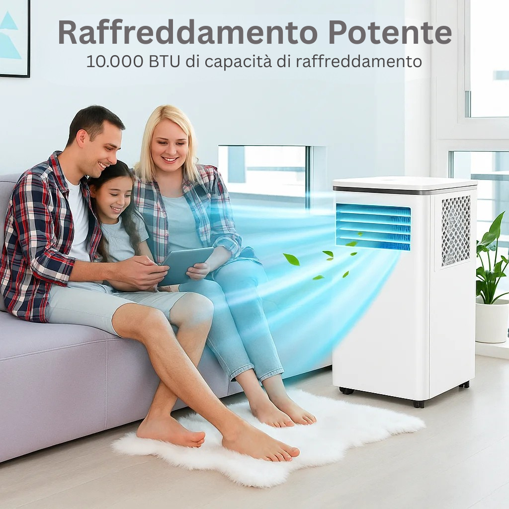 Raffredda ambienti fino a 150 m² in meno di 10 minuti, garantendo aria fresca in ogni angolo.