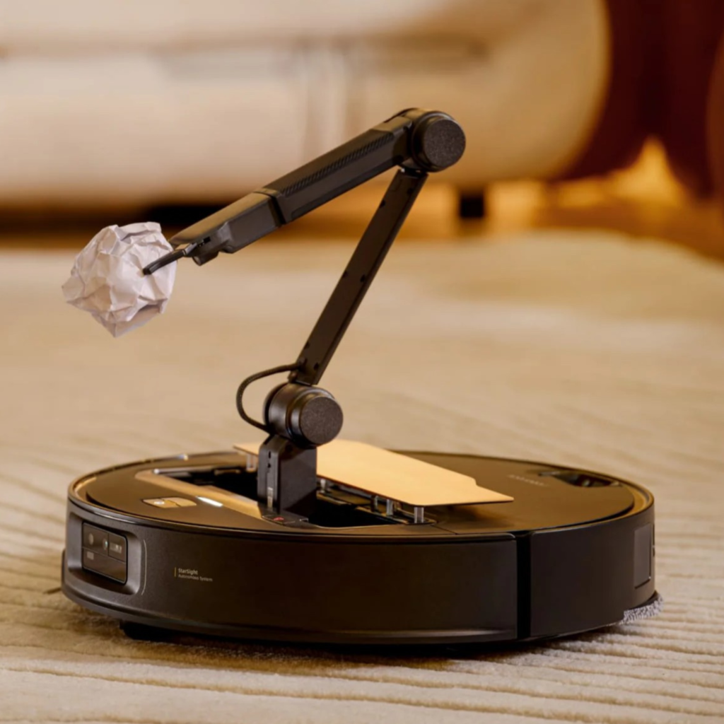 Rameno OmniGrip zvedá předměty až do 300 g (např. ponožky, kabely, drobnosti) a odkládá je stranou, aby umožnilo důkladný úklid. Je vybaveno senzory tlaku pro jemné a bezpečné uchopení.