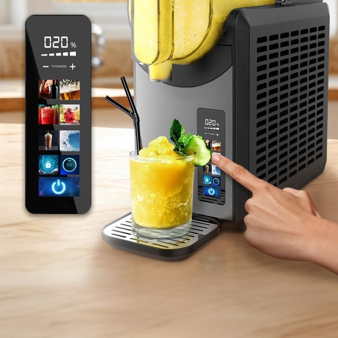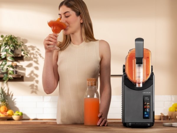 „Nagyon praktikus és jól átgondolt! Az italok állaga pontosan olyan, mint a városban kapható profi gépeké. Koktélokhoz és turmixokhoz is használtam, és minden alkalommal tökéletesen sikerülnek. Ráadásul nem foglal sok helyet a konyhában.”