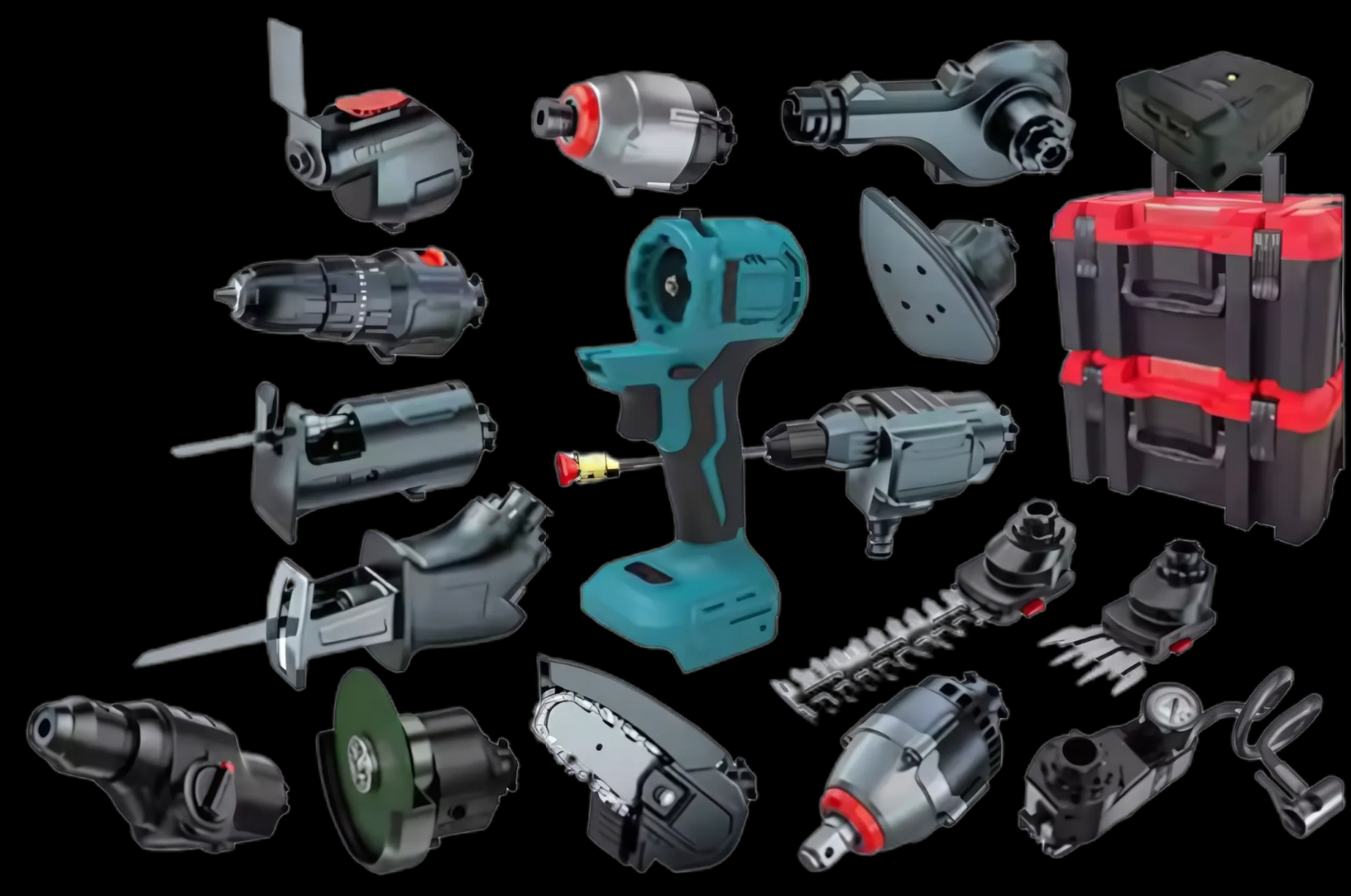 Set uključuje: 48V bezčetkičnu višenamjensku mašinu, glavu bušilice, glavu udarnog ključa, mini glavu motorne pile, glavu recipročne pile s 2 oštrice, 48V bateriju, punjač s šinom, perač pod pritiskom, puhalicu i elegantnu kutiju za pohranu.